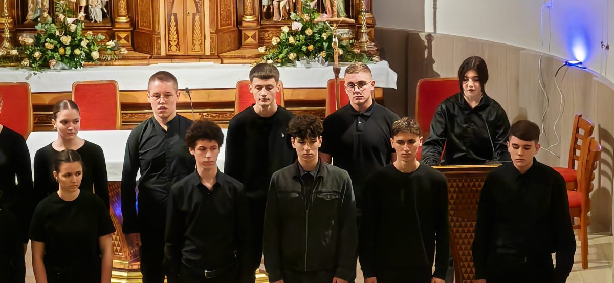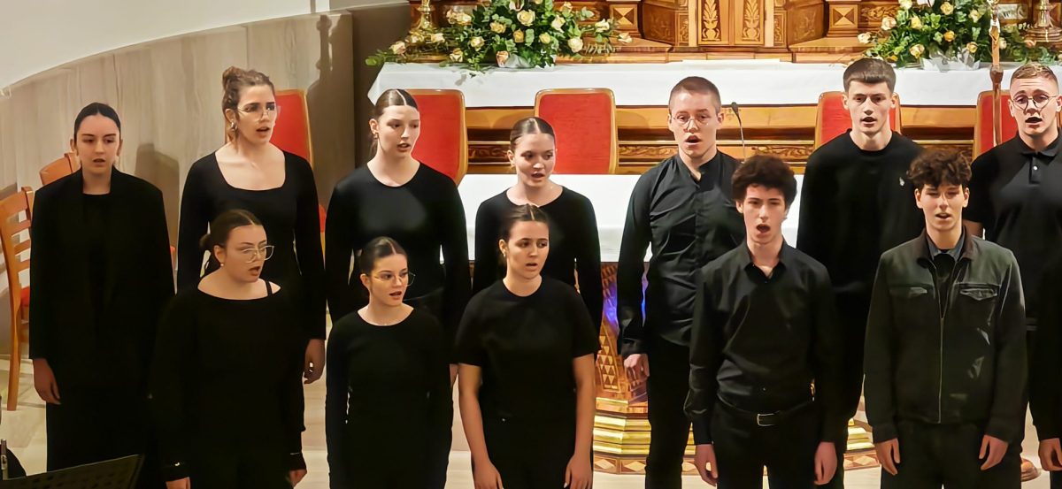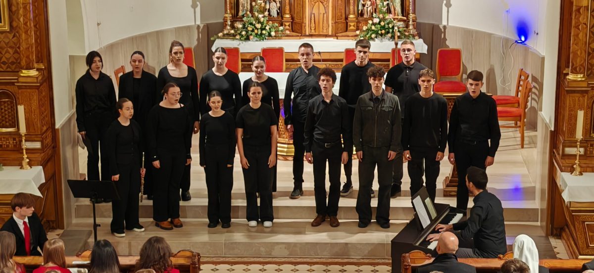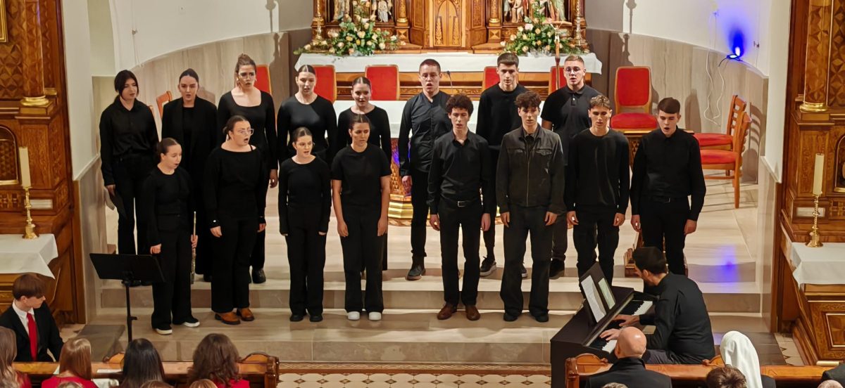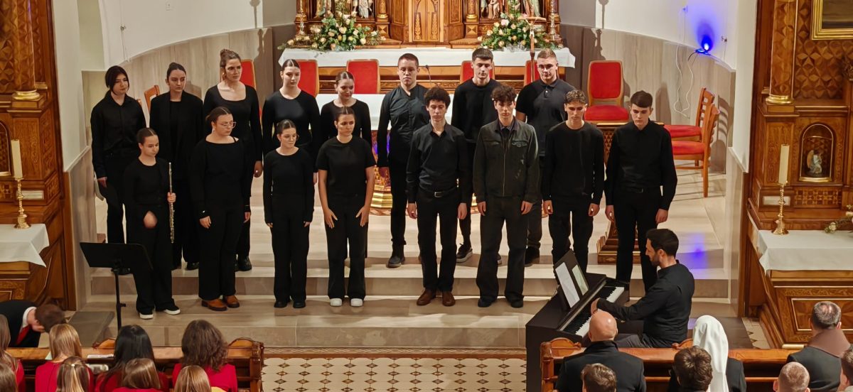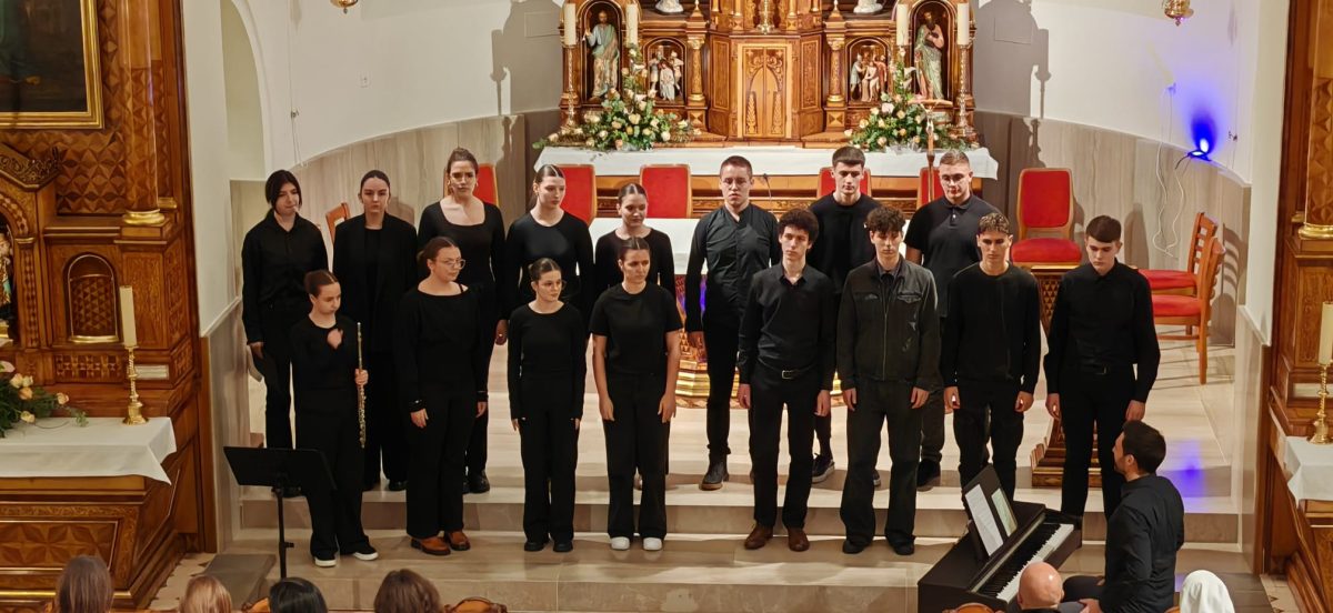 Zbor naše škole izveo je dvije skladbe i to “Jubilate Deo” Jacquesa Berthiera i “Slava si žena” u improvizaciji/obradi prof. Čale. Solističke uloge imale su Ena Anušić (sopran) i Klara Vučemilo (flauta), pod ravnanjem i uz glazbenu pratnju prof. Andre Čale.