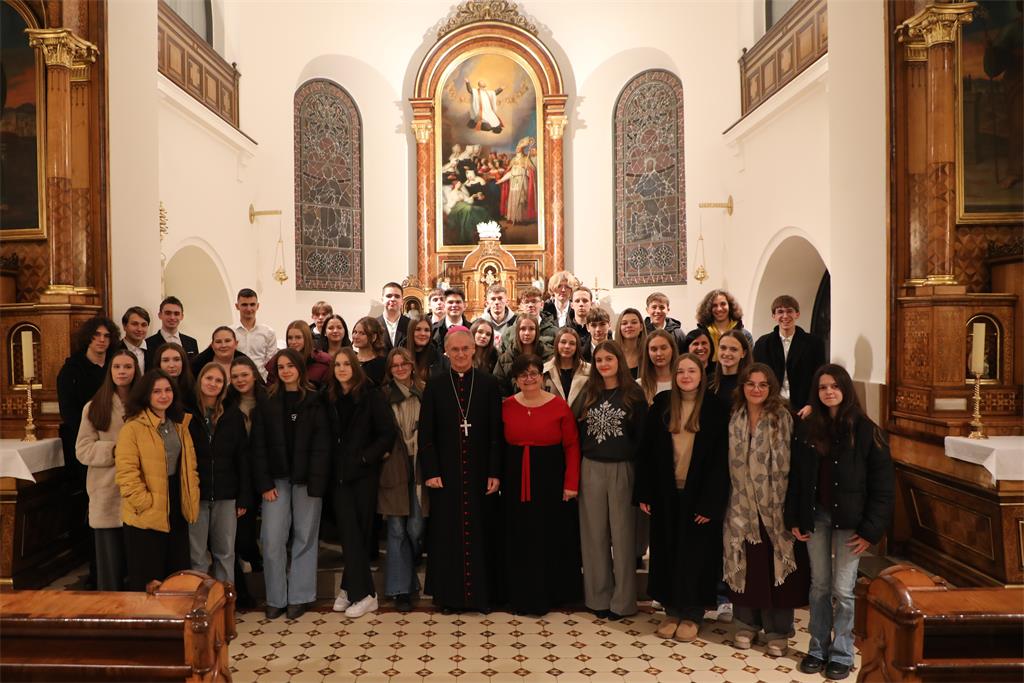 Zagrebački nadbiskup Dražen Kutleša predvodio je misno slavlje nakon Smotre u samostanskoj crkvi sv. Vinka Paulskoga u Zagrebu. Druženje je nastavljeno uz večeru i pjesmu u šatoru Gimnazije.
