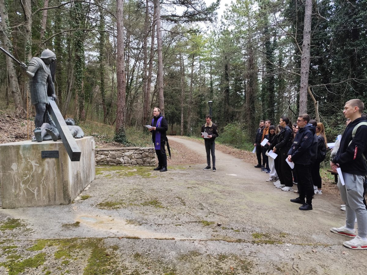 U dvorani Franjevačkog samostana prisutne je pozdravio župnik fra Antonio Mravak zaželivši učenicima ugodan boravak. Potom su maturanti Matej Vugdelija i Josip Brstilo pripremili uvodno izlaganje o položaju Sinja te o Sinju u Domovinskom ratu. S obzirom da smo u vremenu korizme zajednički smo se uputili prema Gospinu gradu gdje je don Vedran Torić predvodio križni put za učenike i nastavnike. Tijekom pobožnosti razmišljali smo o stradalima u obrani domovine, njihovim obiteljima te žrtvi koju su podnijeli za slobodu koju danas uživamo.