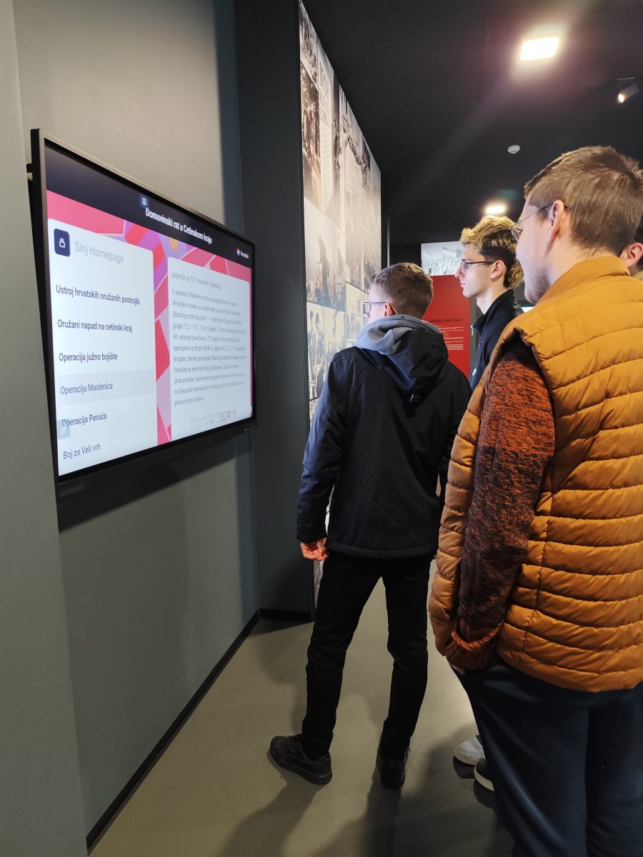 U sklopu posjeta organiziran je i obilazak Spomen sobe posvećene poginulim braniteljima Sinja i cetinskoga kraja. Profesor povijesti Josip Lucić učenicima je održao kratko predavanje na temu Domovinskog rata s posebnim osvrtom na situaciju u Sinju i Cetinskoj krajini. Kroz izložene fotografije, dokumente i osobne predmete, učenici su se upoznali s ratnim stradanjima i doprinosom lokalnih branitelja, čime je dodatno produbljeno njihovo razumijevanje Domovinskog rata na regionalnoj razini.