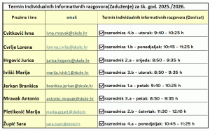 Poštovani roditelji možete vidjeti (klikni te na sliku) termine individualnih razgovora s razrednicom/razrednikom.